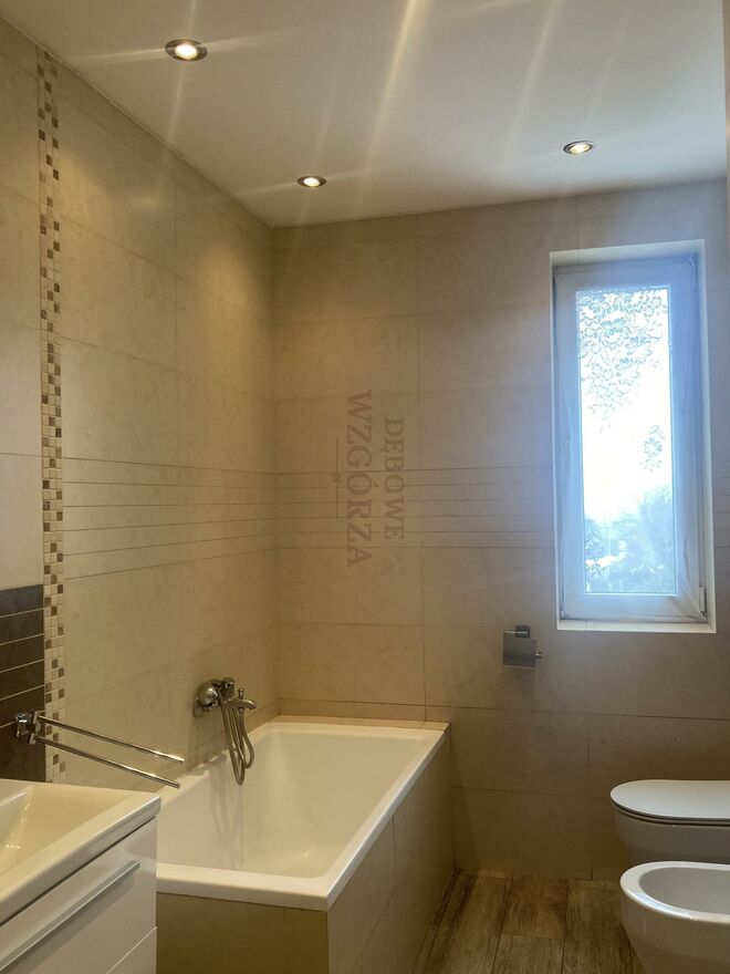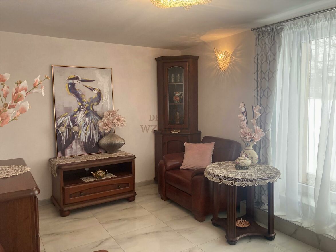 Dom został wykończony w wysokim standardzie, stolarka okienna PCV, drzwi wewnętrzne drewniane, podłogi w pokojach drewniane - deska drewniana, w łazienkach i ciągach komunikacyjnych płytki gresowe rektyfikowane.